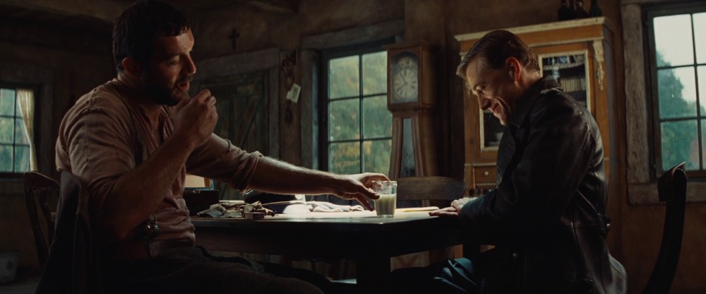 What was sold to us as Tarantino and Brad Pitt do the Dirty Dozen has minimal war action. Like Reservoir Dogs was a heist film without the heist this is the war film without the war. And while I respect Dogs and appreciate its fine (game-changing) writing, it isn’t a favourite of mine… neither is this. This is a half dozen little Reservoir Dogs, in that each chapter resolves around one character figuring out who ‘the rat’ is amongst them? Kill Bill-style grand introductions, making every character an icon… followed by an elongated verbal spar where small talk, threat and misdirection is used to sift out the truth from unbalanced, trapped liars. Times five.