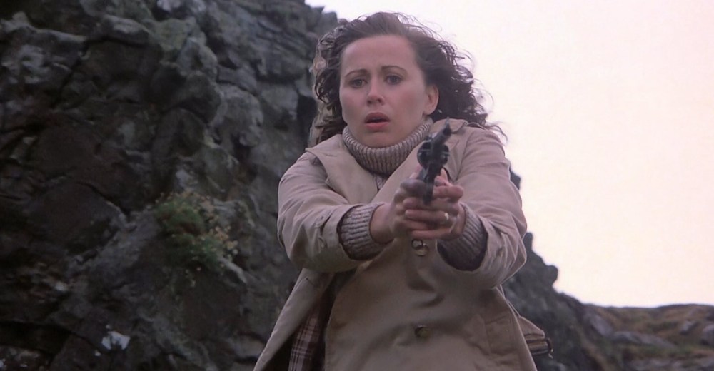 A movie that has a shifting nature. Starting out as a manhunt chase where an icy Donald Sutherland stabs anyone who crosses into his path through 1940’s London. This is slick stuff, there to emphasise the sociopath’s isolation among his enemy and humanity in general. It reminds me of the great 1939 thriller novel Rogue Male, where a sniper is left psychologically abandoned while outfoxing facist pursuers. Sutherland is the dark mirror of Geoffrey Household’s literary protagonist, capable yet hounded… on the wrong side of history. This alone would mark Eye of the Needle out as a decent potboiler but at the midway point, the focus changes. On the run, Sutherland’s cad washes up on Storm Island. There’s a young family reside; frustrated cripple husband, untouched wife, precious toddler son. A drive away there is only a drunken lighthouse keeper and a few sheep. They drag Sutherland from the waves. The wheelchair bound husband suspects he’s a wrong un… the wife discovers a kindred spirit. Another yearning soul who has made a bad life decision and by living with the consequences has cut themselves off from society. A tweedy, rainy, steamy gothic romance ensues – part Daphne Du Maurier, a whole hunk of a Lady Chatterly’s Lover. Ken Follet, the author whose airport novel the film is based on, sure knows how to steal from the best. Kate Nelligan is given a rich complex role, Sutherland as her inappropriate lover becomes a more rounded creation. Then night falls and we are back in action and suspense for a rousing finale. This is a film that constantly improves from a rather stock starting point… and then carries on lingering in your mind a good week after watching. Well worth hunting down… Whatever happened to Kate Nelligan?