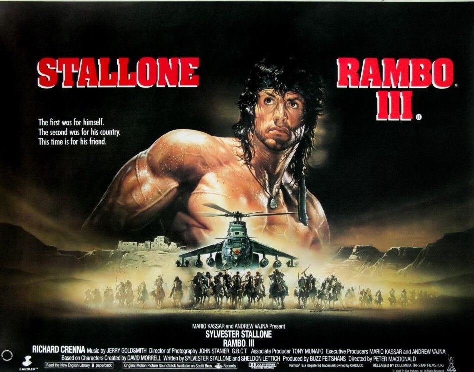 The polished but soulless Rambo III is that future. John has been working as a stick fighter and Buddhist temple restorer in Thailand. Crenna asks him to help sneak ground-to-air arsenal into the Middle East and assist the Taliban against those pesky Commie fast food and MTV haters. Rambo says no. Nothing to do with the murky ethics of treating the thoroughly un-American Mujahideen like freedom fighters. He just likes the Thai stick fighting scene and in all honesty he’s not wrong. That stick fighting is the highlight of the film. Crenna gets captured so Rambo volte faces and takes on the entire Russian army with a bow and arrow, bandana, some tubes of blue chemiluminescence and an annoying local boy he can’t get rid of. Everything that happens is rote and millions miles from the neat, little anti-war, pro-Veteran survival thriller we enjoyed in the forests of Portland years ago.