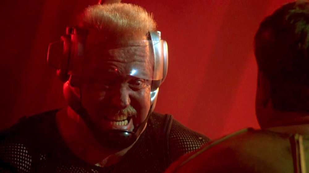 The gameshow itself has the vibes and production values of a big Saturday night special. Fallacious host. Sparkling dance numbers. Prizes for the audience. Yuppies watch it at cocktail and coke parties. The poor huddle around mega screens in their slums making bets with bookies who surround the display. The Running Man is often criticised for Glaser’s flat TV movie direction. But these glimpses of the near-future world have a real pumping, convincing energy to them. The Fugitive and Under Siege’s Andrew Davis was kicked off production after two week of filming. Are these B-Unit moments his? Or does Glaser’s direction deserve a bit of reappraisal?