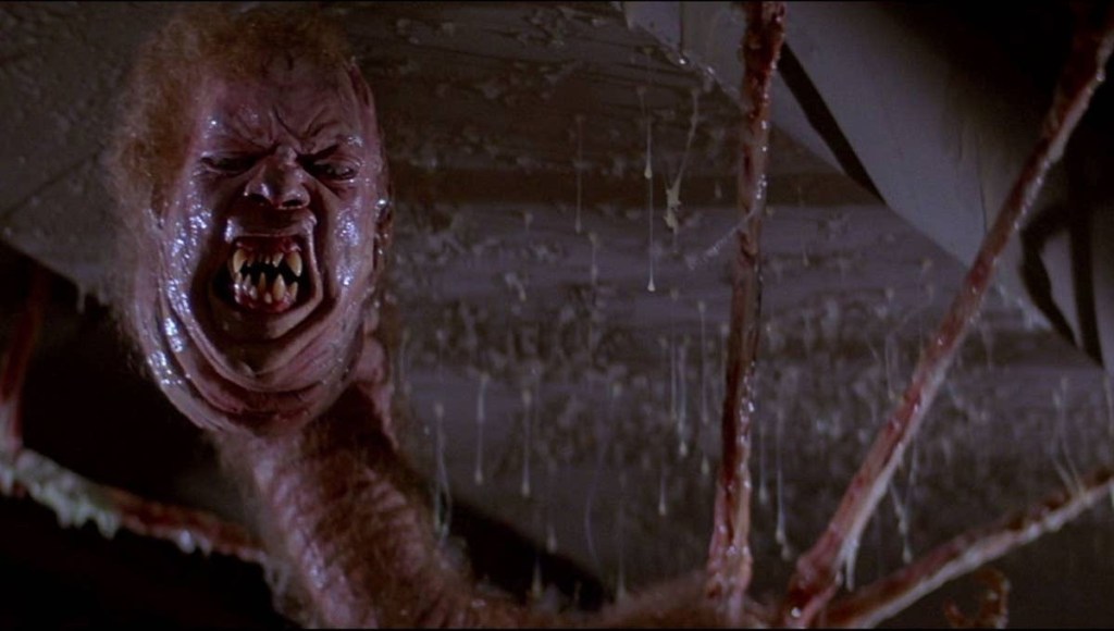 Ennio Morricone’s doom laden score is beating like a dying heart. A gorgeous huskie races across the unforgiving white. A hair smothered helicopter pilot pours melting ice and blended scotch dregs into his chess game’s harddrive. I’m in now but I wasn’t always. As a teen Carpenter’s finest didn’t get me. A notorious flop on release, this like Blade Runner (they were released on the same weekend) saw its reputation grow once it hit VHS and telly. It is almost easier to see why The Thing failed even though I prefer it. A desolate, often silent then earsplittingly loud and always pessimistic, film that explodes in bursts of nauseous shock and dread inducing fatalism. Like Guinness and whisky, you need to grow your tastebuds into a flick that is essentially beardy, paranoid middle aged men bellowing at each other for 90 minutes. Who is human? Who ain’t? Do the copies even know if they themselves, or which of each other, are alien? It is 12 Angry Men with dynamite and shotguns. Death on the Nile where Poirot prefers kerosene to monologues. Ostensible hero R.J. MacReady ain’t no bastion of good in a white suit; reluctant, self serving and only sometimes one thought smarter than a creature that has survived eons. Listen, I love Kurt Russell in this but I cannot for the life of me think why he wants to burn the entire outpost down in the third act (spectacle aside). The Thing can survive freezing to death, humans can’t… UNLESS!?… The transforming monster FX work are gloopily mind blowing. Rob Bottin, just 22 at the time, uses every animatronic technique in the book and then camouflages them in slathers of Vaseline, skewed lighting and elliptical movement to convince you heads are becoming space spiders and organs are becoming snarling dog foetuses. Case closed for the defence of practical effect over CGI. Your honour, this is the final argument against folks who instantly write off any remake of a beloved genre film too. And having said that, I’m even quite perversely fond of the Mary Elizabeth Winstead prequel / remake. “Yeah, fuck you too!”