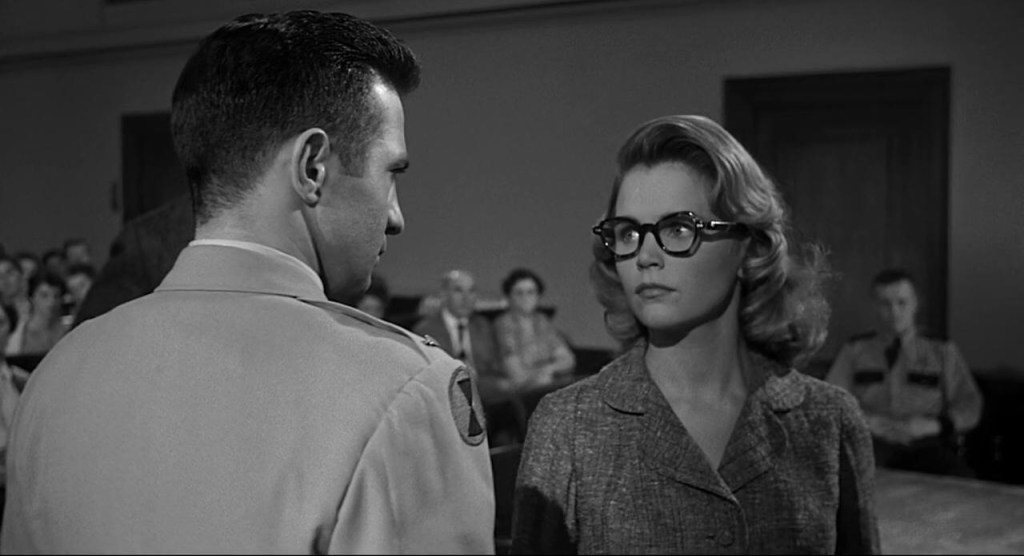 When you think about it, it is surprising how few courtroom dramas spend a significant amount of their runtime in the courtroom. Anatomy of a Murder has an preamble hour where Stewart’s folksy smartie decides whether to take the case, researches it and the law. But then we spend pretty much an extra feature length actually in front of the judge. We watch the theatrics of the judicial system and the pressures put on witness. And the ever loveable, completely trustworthy James Stewart is our handholding guide. Watching him expertly navigate the less reliable characters (all played by that new fangled method acting sort) is part of the joy. Gazzara is a little awkward in his rage fuelled defendant role but George C Scott makes an impression in an early turn as an out-of-town prosecutor. The real stand out is Lee Remick… she not only always looks fantastic despite playing a rape victim and a beaten wife but her cutesy flirt act appears to be a smokescreen for a far tougher cookie who occasionally pops out from the cover. That’s the superb thing about Anatomy of a Murder… you don’t get any flashbacks… the witnesses, victims and accused are clearly all lying about something. We never get the actual truth. Even in the final shot, a cynical coda worthy of Billy Wilder, after the verdict has been won, we aren’t really sure of anyone’s fate. It takes a long road to get there… it really feels like two movies playing in tandem… but there is plenty of racy material, fine shots, memorable moments and superb performances within. Another great jazz score too by Duke Ellington who has a cameo.