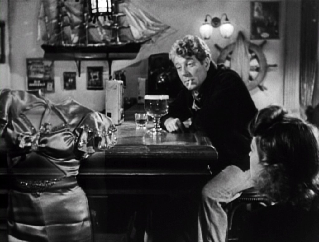 Tough and charismatic French star Gabin’s first lead Hollywood vehicle. The always wonderful Ida Lupino playing a little bird with broken wings who comes under his care. A houseboat setting that allows various personalities around the dock to drift in and out of their tentative romance. A thick mood of fog, booze and torpor including a Salvador Dali designed drunken wig-out sequence. Fritz Lang started this project but quit. Allegedly as he and Gabin had both been Marlene Dietrich’s lover and the tension that brought was unworkable. I’d suggest the project isn’t an obvious fit for Lang. The plot is loose, almost indistinguishable. It really is just the community and potential threats anchored around the cautiously chaste but obviously attracted to each other unlikely couple bobbing in and out of scenes. Will Gabin’s Bobo stay on the straight and narrow and settle down? Can Lupino’s Anna survive the more brutal elements of his past that haven’t quite accepted he is moving on? The movie does boast stand out B&W photography by Charles G. Clarke. Deservedly Oscar nominated, you can cut the moody pre-noir atmosphere he creates with a rusty knife.