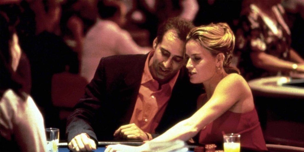 When you watch Chicken Run you get an unfortunate hankering for a three piece meal. When you watch Leaving Las Vegas you wanna have a drink. Not downing vodka like it is water… Does anyone knock back spirits like this outside of the movies? What a movie. You get Vegas looking bright and sleazy. The editing is experimental and kaleidoscopic. Figgis’ camera finds everyday beauty whether lit by the dazzle dazzle of the strip, the clean lustre of a mall food court or twilight sun dappling droplets of bourbon on breasts. You get Elisabeth Shue looking delectable, yet channeling a backstory of abuse, exploitation, codependency and low self esteem convincingly. You get Cage’s most focussed wildly cool, erratic buffoonery. The booze is the fuel for his eccentric swings and volcano of tics here. He’s morose in a well of self pity, then he’s partying down a supermarket aisle stocking up on his poison, then he’s being a horny quote machine, far above self respect to care what flirtatious obscenities are wafting from his stinky mouth. “Like the kling klang king of the rim ram room.” Who knows what is flowing through his unrestrained brain? It is a performance like jazz with a bazooka with a bottle in both hands. There’s no doubt why Shue’s Sera falls in love with such a self imploding car wreck of a human. We do. There’s no doubt why she wants to stop him slowly rotting his body. We do. There’s no doubt in the quiet final moments our hearts have shifted from the bad choices and hurtful rejections to an unlikely, bleak transaction of tenderness that somehow closes the door on two troubled lives. For a little while they looked like they might save each other. Oscars all round. For once they got Best Actor bang the fuck on!