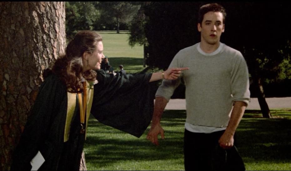2) That exemplary final scene. Boarding a plane to England together, Lloyd is calming Diane down over her fear of flying. He has brought snacks and reading materials. Knowing that she is nervous about the flight he explains that when the Smoking sign dings the pilot has taken the airplane up safely and everything will be alright. We follow their small talk and fears for their future. And then we silently hold on them, waiting for the ding. As it rings and the movie cuts to black and credits roll… we also know everything will be alright. Not just with the flight but with Lloyd and Diane. Say Anything… doesn’t end on a rainswept kiss or a rushed wedding, it ends on a subtle promise that these kids and their nervous love is going to soar. The ding is all we need to know. It is a wrinkle of screenwriting finesse that outshines Billy Wilder and I.A.L. Diamond. Beautiful.