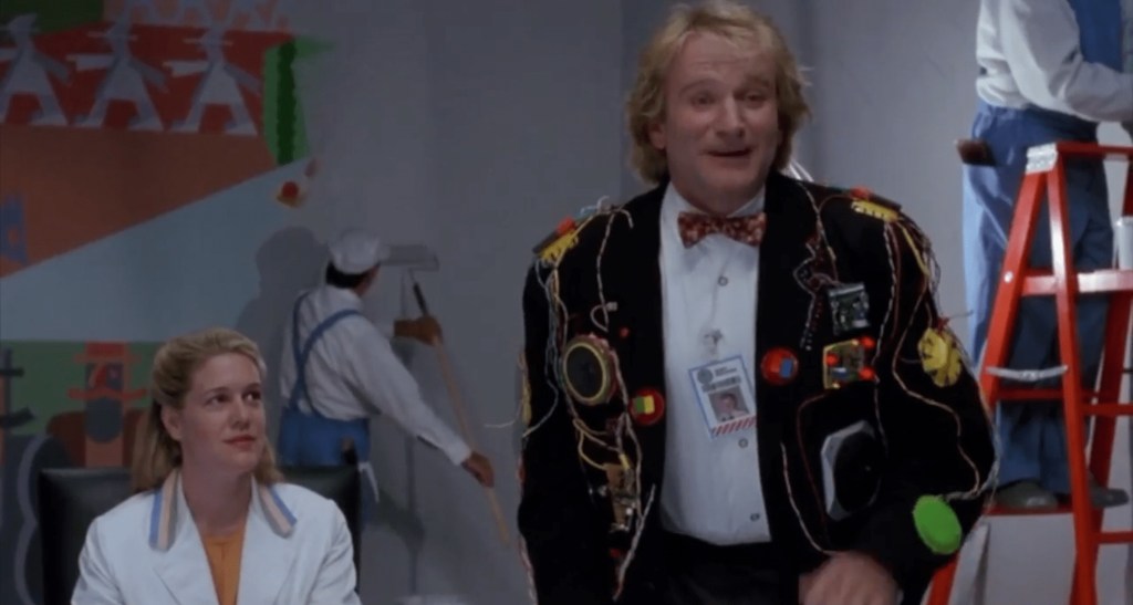 Toys even had a bankable star. Robin Williams, the motor mouthed comedian who made the leap from stand-up to sitcom to A-List. He had won plaudits collaborating with Levinson on Good Morning Vietnam. He somehow charmed the world into making a period film about a school pupil’s suicide into one of the Top 10 money earners of 1989. If audiences’ flocked to see Williams in Dead Poets Society, imagine the stampede for him in a René Magritte inspired pop art extravaganza! Williams as a Wonka-esque genius who has to protect the innocence of imagination and play. Sounds fucking marketable!