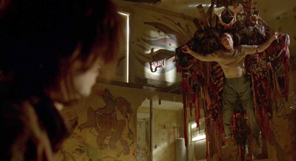 Something that these days would be described as “horror adjacent”, this is ram jammed full of disturbing gloopy imagery in the service of a wayward private eye narrative. Noir where you can expect a generous serving of gore or creature FX work every other scene. The bookending sequences with the Manson-esque desert cult are deliriously overblown, everything else makes for good trailer and Fangoria shots. The plot itself is wobbly and overpacked. There are flashy loose ends that never go anywhere (detective Harry D’Amour’s flashbacks to an exorcism, a baboon). You’d struggle to say our protagonist does much more than turn up and bear witness to whatever weird shit or fated death is waiting behind each door he kicks down. He has very little interactive affect on the plot. Which is a shame as this was one of Scott Bakula’s rare attempts to convert his Quantum Leap stardom into a big screen career. It is the only studio film I can think of where he was the name above the title. He makes a good fist of being the Indiana Jones or Sam Spade of the uncanny but alas the film was unloved by the studios who traded it between themselves during a catalogue sale. It also is the last time Barker directed a feature. Fair to say his storytelling is still too raggedy to really fit the mainstream, the master of horror prefers shifting dream logic to tight Robert McKee structure. You can’t help but wonder what might have happened if a friendly collaborator (producer, editor, anyone) gave him the note to put his hero in more direct peril, with some kind of invested presence within the grand evil that unfolds? Would have helped Bakula make more of an impact and elevated Lord Of Illusion from being a mere eye catching curio to a genuine lost treasure.