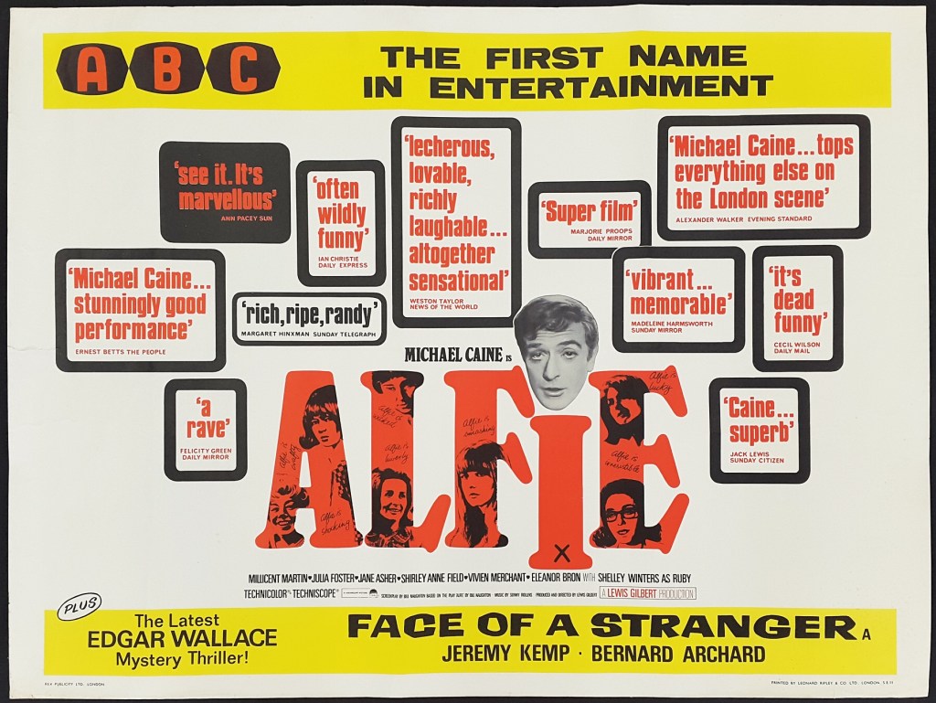 Alfie is all a lot more humorous and sexy and entertaining than I’ve just made out. You can still just watch the classic as a cheeky lark. The first hour anyway. London has rarely looked better, stunning location work. I love it.