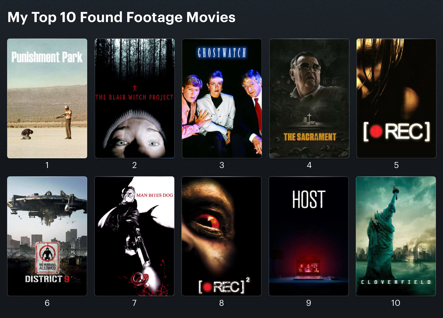 I still need to see Punishment Park. While I’ll dislike the found footage subgenre with a passion, I thought Chronicle (2012), along with District 9 (was that footage found or occurring in real time?) was arguably the best I’ve seen – https://www.imdb.com/title/tt1706593/