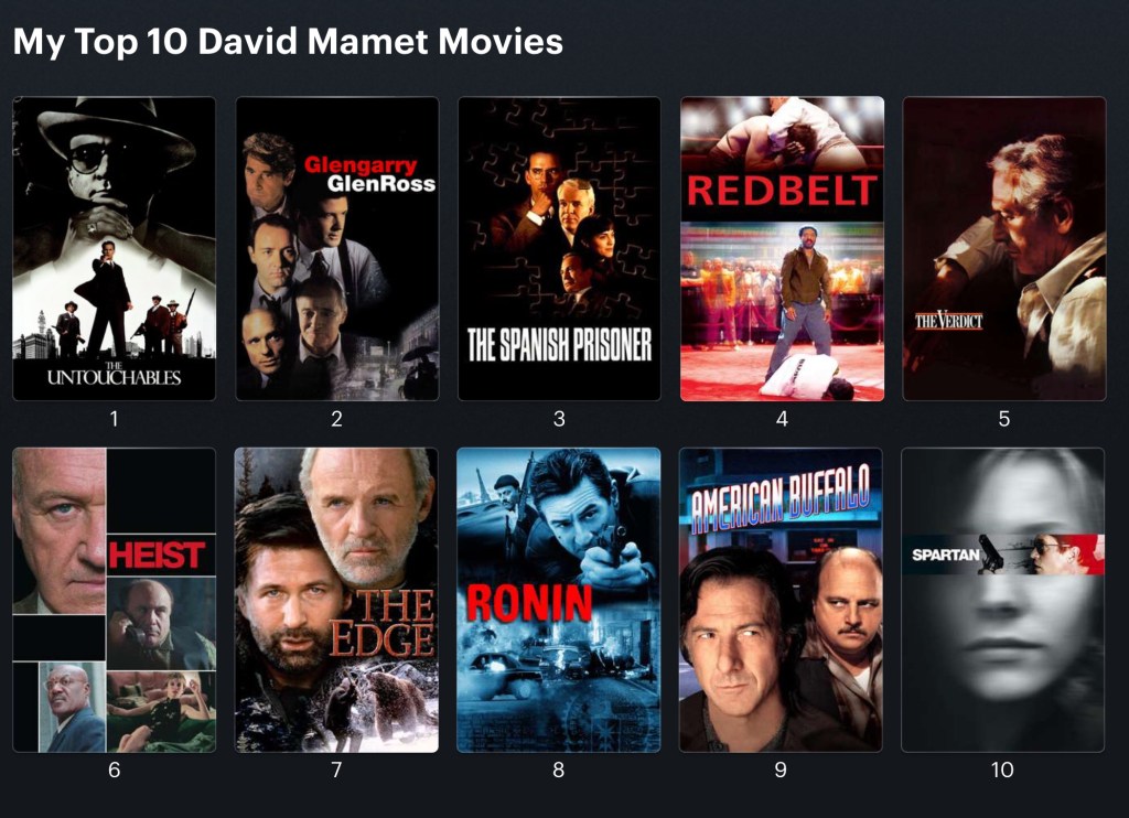 Action sequences?! What is this a Stallone flick? Even so, possibly the most Mamet of Mamets. Don’t let the mixed martial arts setting fool you. He clearly became enamoured with this world while doing some training, but his take on it is pure Dave. This still has trademark lines of dialogue as succulent as “The belt is just symbolic. The belt, as Snowflake says, is to just keep your pants up.” …And retorts as dry as “Read the street signs. We’re in America.” I won’t give you the context for that one but suffice to say it is a potent humdinger. The plot is sheer quicksand, with Chiwetel Ejiofor’s honourable blackbelt (easily his career best performance) getting deeper and deeper with each interaction he finds himself in. I love this shit. Wish Mamet wrote and direct twice as many like this.