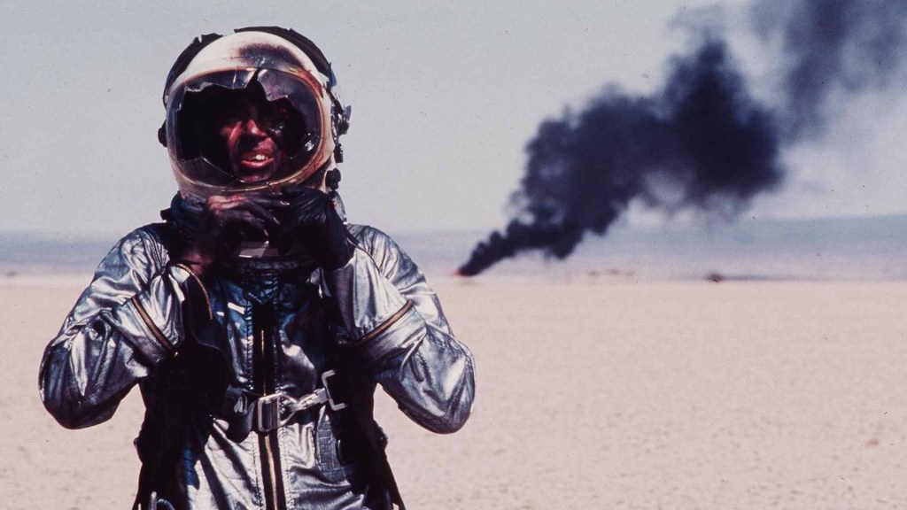 Allegedly the astronauts didn’t like this representation of them. Mercury Seven original Wally Schirra said: “It was the best book on space, but the movie was distorted and warped… All the astronauts hated it. We called it Animal House in Space.” You can see why the flyboys who conquered the stratosphere didn’t gel with this representation of themselves. They’re cocky, laddish, constantly flirting with death wishes. Cowboys who could be replaced by chimps. Pioneers along for a ride they have little control over. Only really Harris’ John Glenn shows an external humanity, emotional maturity. He treats his wife with a gentle adoration while the others hound dog and drag their ‘First Ladies Of Space’ about like required ornaments. Kaufman ain’t interested in myth, he’s interested in myth making. The Man Who Shot Liberty Valance at MACH 3. He knows it takes a special kind of macho jock to achieve the unachievable. He makes no bones in presenting these men as fallible, flawed and competitive. Because he has no need to turn these men into heroes. They already are, he’s trying to reset them back to being men. Rewind all the hype and propaganda, the Presidential phone calls and ticker tape parades. He explores some icons like Chuck Yeager (Shepard making a genuine, almost supernatural, impact as the man who should have been king of space) with an affectionate focus, others with a cursory shorthand. The movie lacks narrative form, drifting from one character or location to the next with little finesse. It isn’t interested in a trad three act structure. It is a freewheelin’ procedural of a unique, never repeated adventure. Yet it never feels baggy at three plus hours. The Right Stuff feels like a feast. The filmmakers eschewed the use of visual effects done in the lab. It makes you feel like you are right there. Did Tony Scott and Joseph Kosinski use this as a starting point for their Top Gun movies? Fleshing out all the reality but retaining the need speed, the desire to put an audience in the cockpit as the impossible is tamed? Bill Conti’s score adds to the aura that we are on the precipice of a new age of man. It absorbs Holst’s The Planets and Native American chant recycled from a previous Kaufman flick. Synthesiser heaven. John Barry was originally asked to compose the score but didn’t like Kaufman’s brief for how he wanted his movie to feel. “Sounding like you’re walking in the desert and you see a cactus, and you put your foot on it, but it just starts growing up through your foot.” In its finest scenes, and this evening devourer is full of them, The Right Stuff makes you feel like you are witnessing the points in the 20th Century where humanity is being redefined and America lives up to it grand potential. A once in a lifetime cinematic experience.