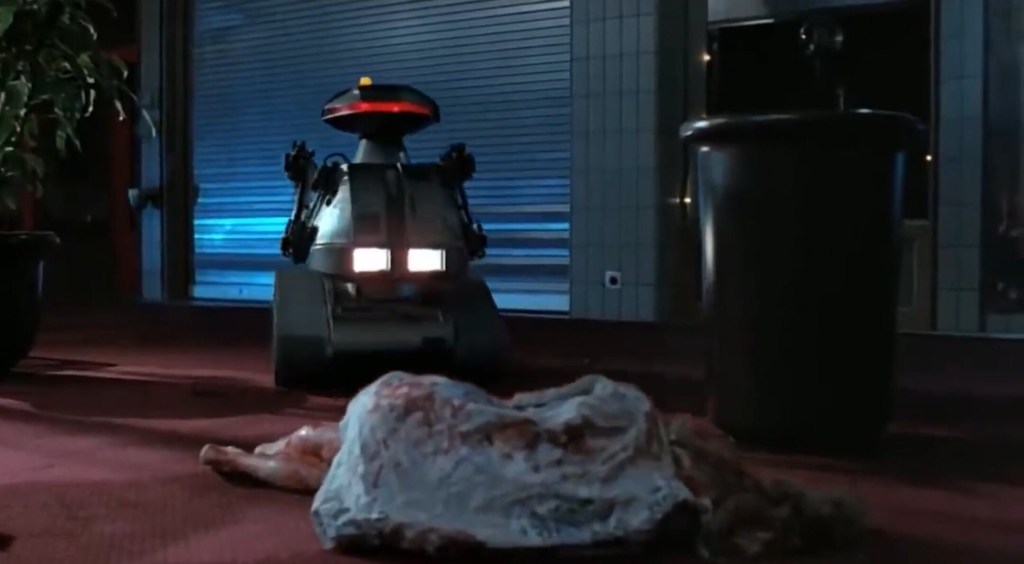 Jim Wynorski directs Kelli Maroney, Tony O’Dell and John Terlesky in this low budget sci-fi slasher where the new security robots who patrol a shopping mall at night break-up a party with deadly force.
