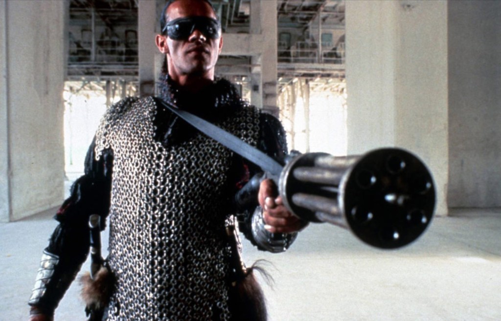 I never thought I’d type these words – too nasty, too bleak, too violent. Just grim. Cheaply filmed across scrubland and abandoned buildings, the script and props were repurposed from the Masters Of the Universe sequel Cannon couldn’t afford to make. It is 50% incoherent flashbacks, 50% running and kicking to no objective, and a whole lot of grunting. So much grunting.