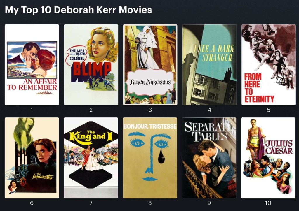 Cine-fied plays are my least favourite genre but the mega set this is filmed on, and the characters are genteelly trapped within, is an impressive construction. Niven puts in a wonderful shift, Academy Award winning, as the old fraud who has exaggerated his military past and likes an innocent nudge. Hayworth, Burt Lancaster and Wendy Hillier’s love triangle is really quite emotionally mature and tragic. Their story has the best acting, all differing styles. Kerr plays against type and her simpering doormat really grates. She’s the only weak link but one that does hold this compassionate little chamber piece back from classic status. Fantastic ending.